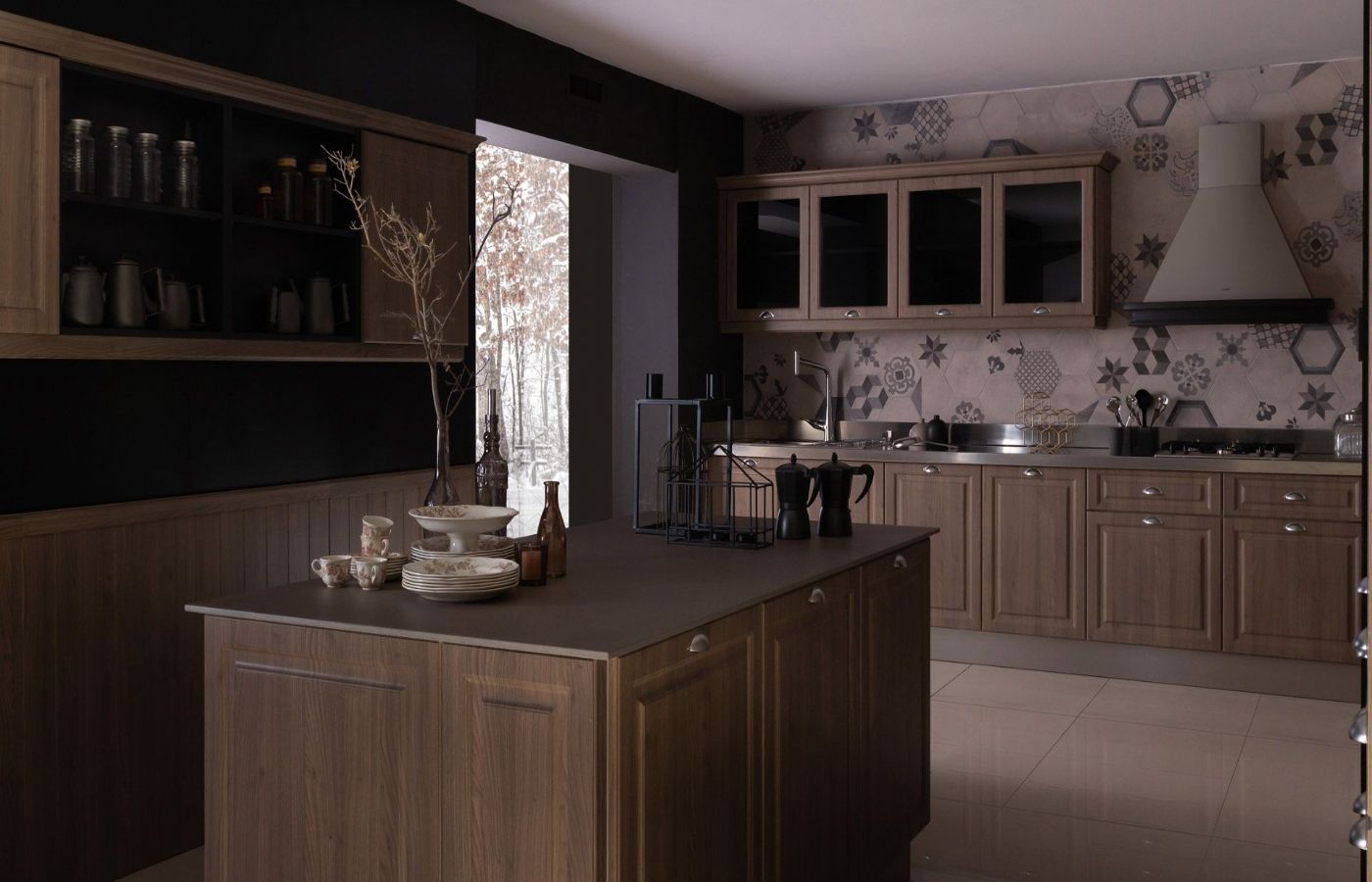 En el Trento se representa lo cálido de los motivos madera conviviendo con los metales pulidos y tonos ámbar de elementos decorativos y funcionales que componen un espacio de cocina donde se conjuga la calidez de la memoria con la limpieza del diseño contemporáneo.