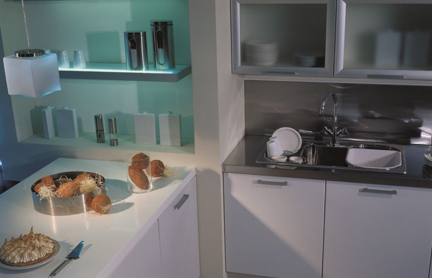 doméstico. Este modelo brinda la posibilidad de combinarlo con alacenas Vetrato y detalles en aluminio.