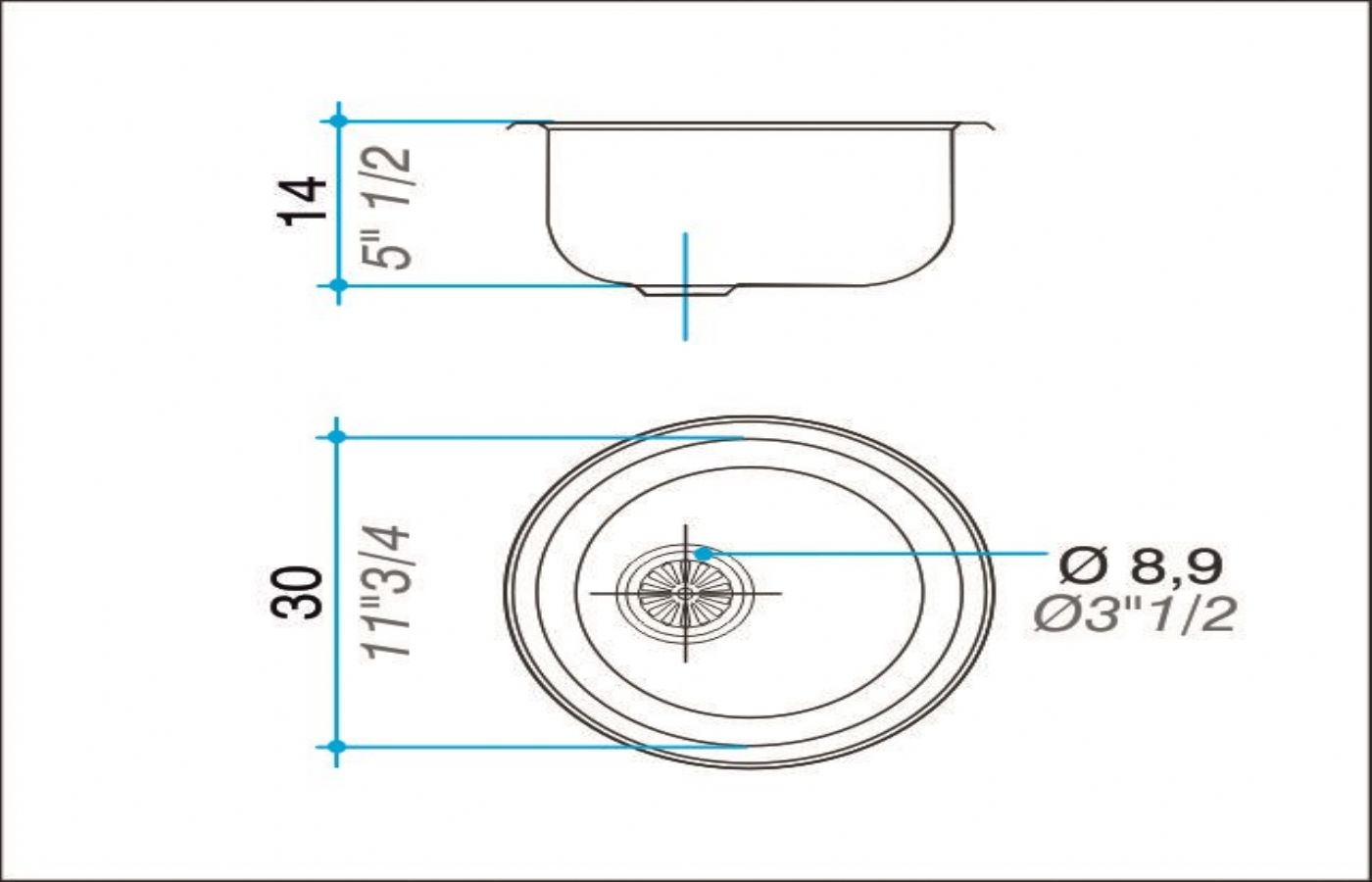 Pileta redonda. Su desagüe desfasado permite mejor aprovechamiento de su superficie. De aplicación superior, posee un elegante borde decorativo.