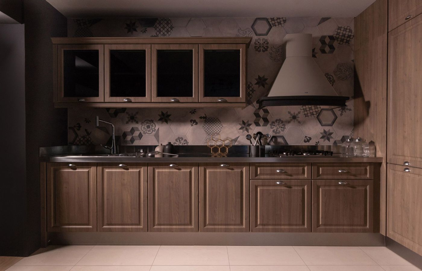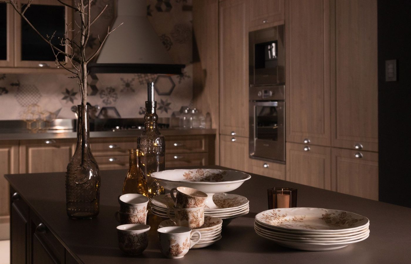 En el Trento se representa lo cálido de los motivos madera conviviendo con los metales pulidos y tonos ámbar de elementos decorativos y funcionales que componen un espacio de cocina donde se conjuga la calidez de la memoria con la limpieza del diseño contemporáneo.
